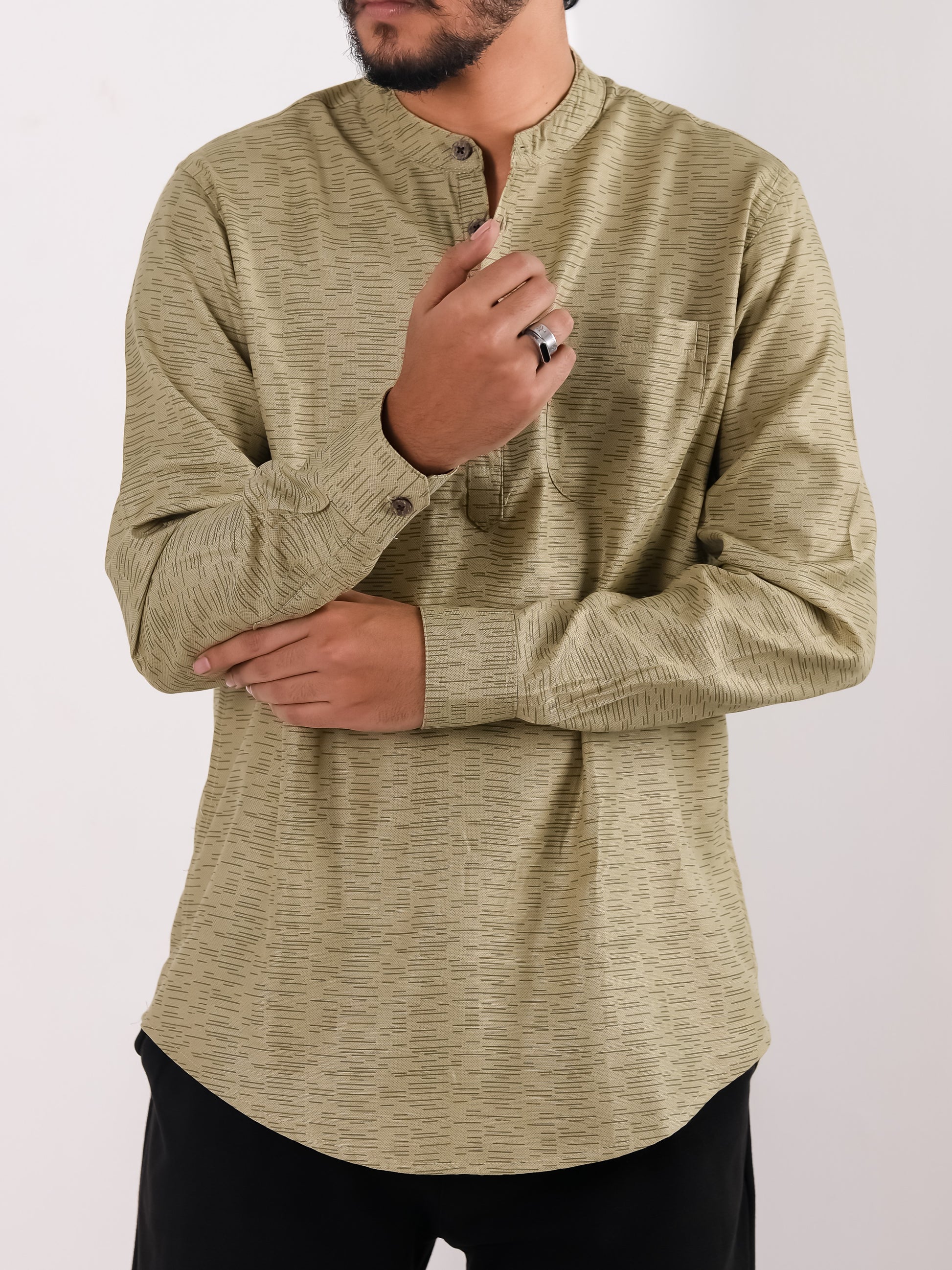 Tailored in a regular fit, it delivers a clean, structured silhouette with relaxed comfort — making it ideal for everyday wear, casual gatherings, or elevated traditional styling.